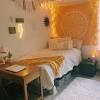 Texture is the key to achieving a trendy boho look in your teen's bedroom. This lovely little loft bed spotted on brit & co, offers the perfect hideaway for your sweet girl. Beige walls, walnut flooring, and a patterned brown ottoman provide a neutral foundation that keeps the small space from feeling cramped. Even opting for a large monochromatic yellow wardrobe can make heads turn in a gray bedroom. Orange with pink is a popular combination that can be used in soft shades or energetic bright shades.